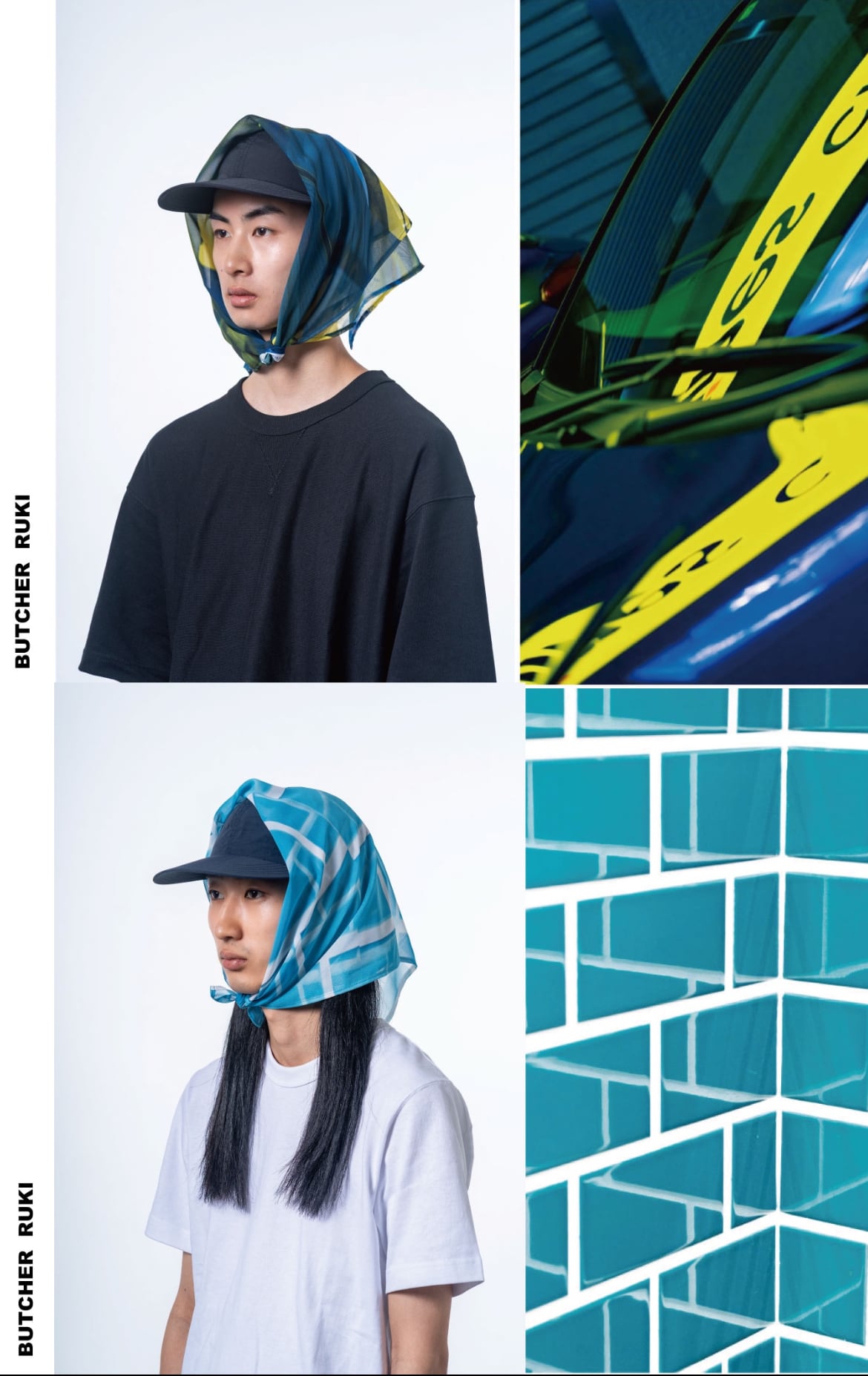 まるでグラフィックのような日本各地で撮影された写真を8枚セレクト、生地に落とし込み帽子、スカーフ、クッション、BAGのアイテムを製作しました